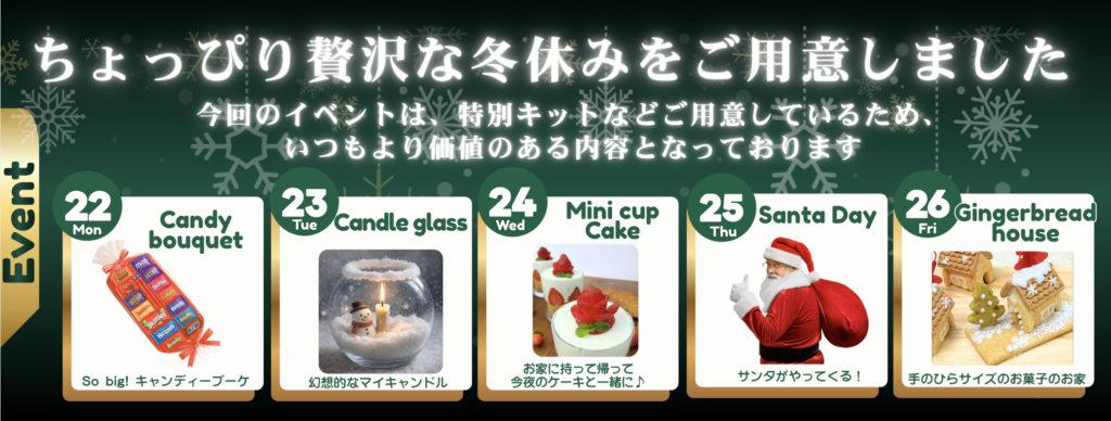 12月の3歳〜10歳お子さまを対象にした 12月Winter programを開催いたします✨